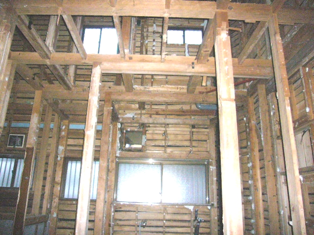 Drywall & 無垢材の家注文住宅 施工例 築40年以上の家無垢材フルリノベーション Before 工事写真を見る After 完成写真を見る 完成写真 木製ドア・無垢材フローリング 工事中の写真 工事前はスケルトン床下にコンクリート耐震補強耐震補強床の傾き調整断熱材